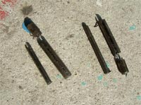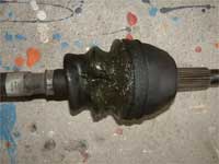 ◆この作業は、二度目なので勝手知ったるって感じで進めたんですが(ドライブシャフト交換作業参照)、抜け防止のピンが二本とも折れてしまいました。 |